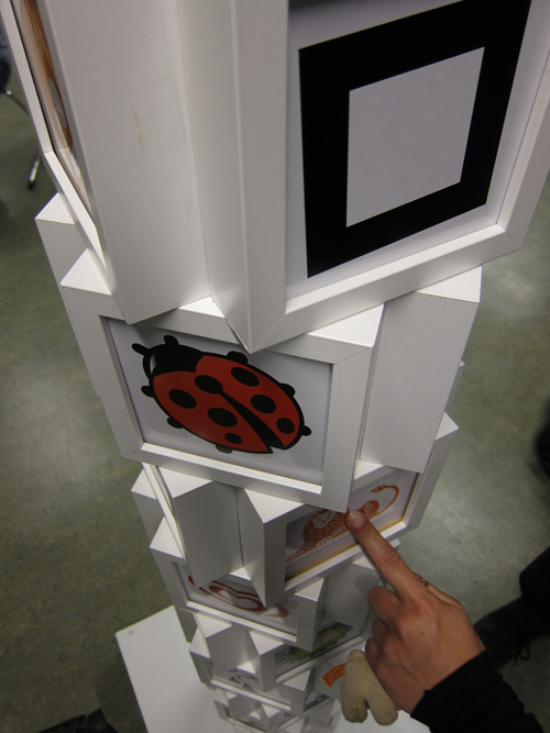 The idea was to make the building of sentences as physical as possible. Children have to walk around it, reach out to the top and bend down to reach the bottom. This way the children are interacting with educative content in a very playful and tactile way.