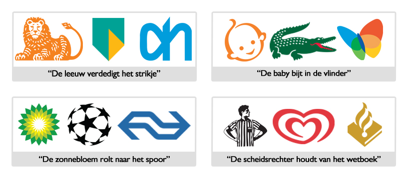 At the age 7 to 9 years, children start to develop familiarity with brand logos. The goal is to learn them that a lot of logos carry out a message through their visual appearance. The ABN AMRO logo resembles a shield, and the Albert Heijn logo resembles a ribbon. The idea is that children combine logos in a playful way, resulting in a message. This way they should learn about the logos in a very amusing way.
